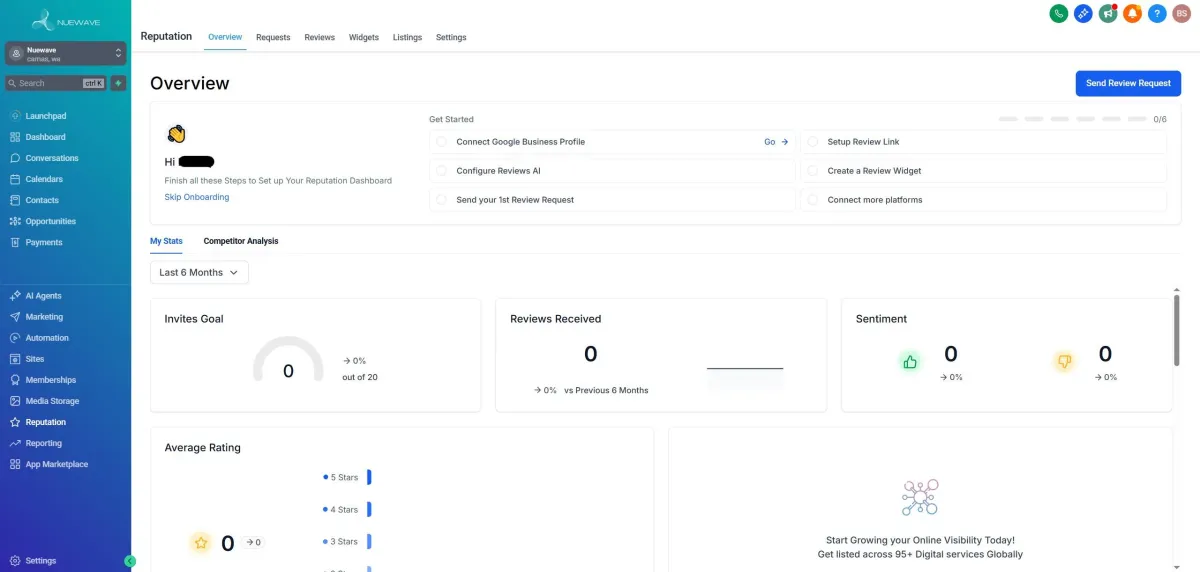 NUEWAVE’s Reviews tool makes it simple to manage your online reputation and turn happy customers into 5-star ambassadors. From your dashboard, you can automatically request reviews after appointments, purchases, or form submissions — via text or email — and direct customers to your Google or Facebook review pages. You can track who has left a review, who opened the request, and who still needs a follow-up. All reviews are pulled into one place so you can monitor, respond, and showcase them across your funnels or website. Want to prevent negative reviews from going public? Use internal feedback routing to catch unhappy responses privately before they reach Google. Whether you're a local business or a national brand, NUEWAVE helps you build trust, improve SEO, and boost your online credibility — all on autopilot.